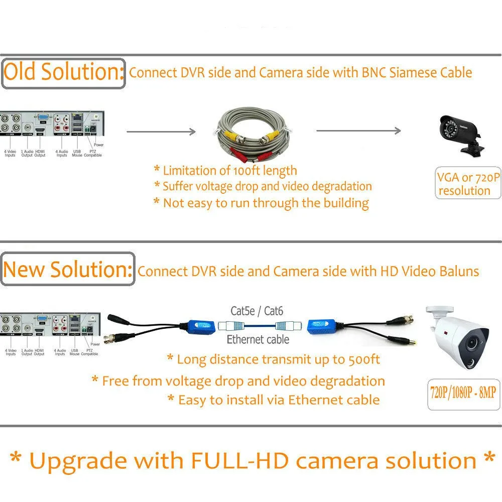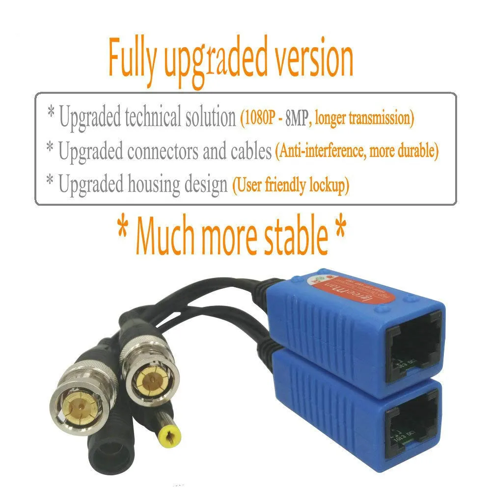 Product Name: Pripaso 4 Pair pasywny transformator wideo BNC do adaptera RJ45 z zasilaniem Full HD 1080P 5MP kamera ochrony nadzoru kabel ethernet